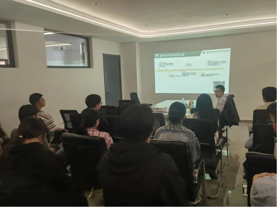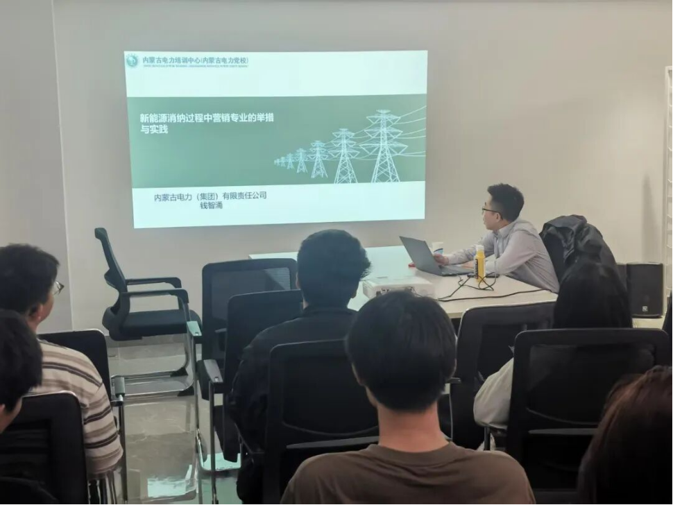 在新能源消纳环节,来自内蒙古电力集团的钱智涌老师向大家解析蒙西电网新能源发展,向并同学们讲解通过灵活的电力市场机制、储能技术的部署以及强化需求响应等方式,能够有效提升新能源消纳能力。现场还向同学们分享了实现新能源的高效消纳与并网的多个案例。