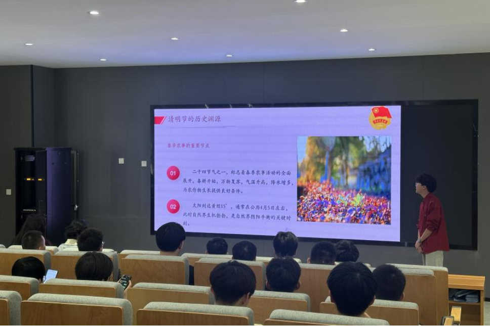 “青团艾草香,风筝寄哀思。” 通过视频讲解与互动问答,同学们深刻感受到 “寒食禁火”、“踏青赏春” 的文化内涵。结合 “孝悌” 思想与革命精神,号召青年以清明之思筑牢信仰之基。