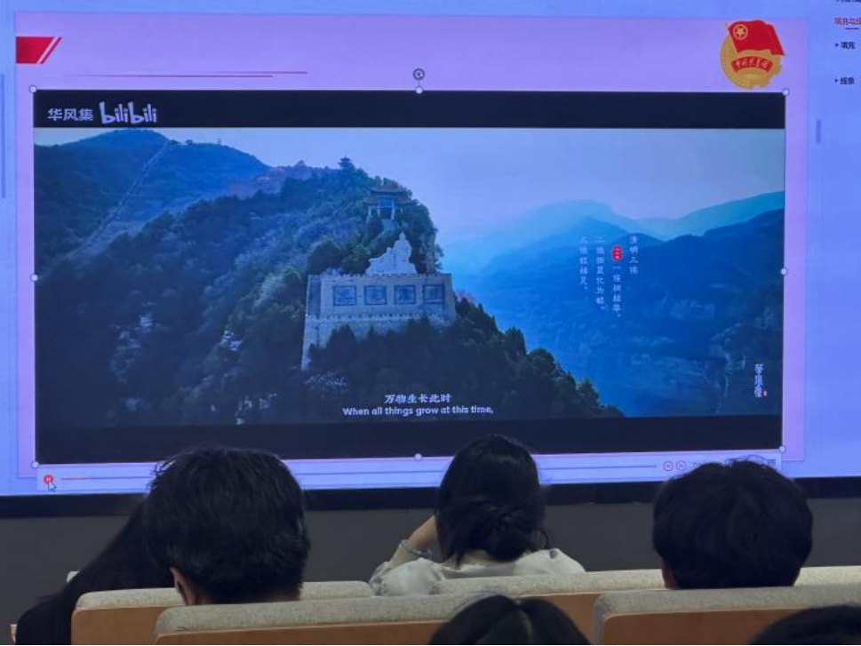 电信大楼多功能厅内庄严肃穆,五十余名同学共同参与主题团日活动。活动以 “千年文脉映初心” 为主线,通过 “节气科普 + 历史故事 + 互动体验” 三维度展开。