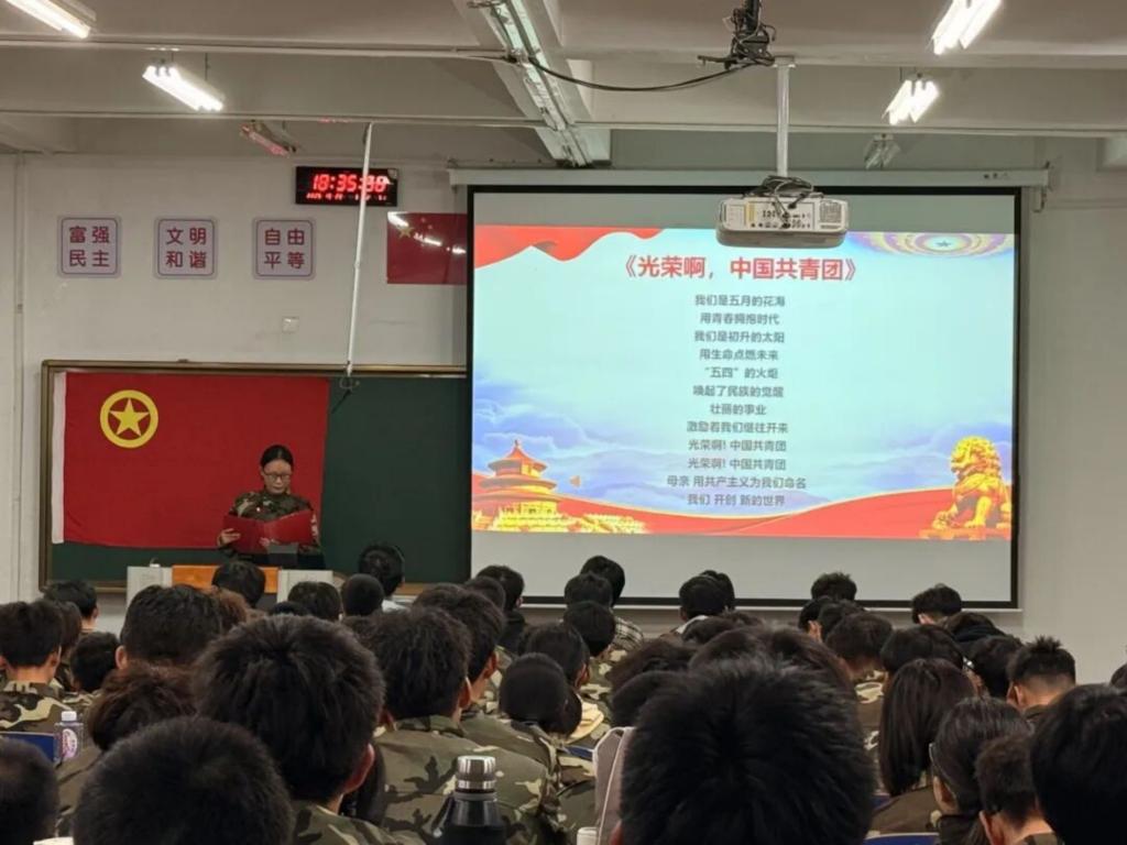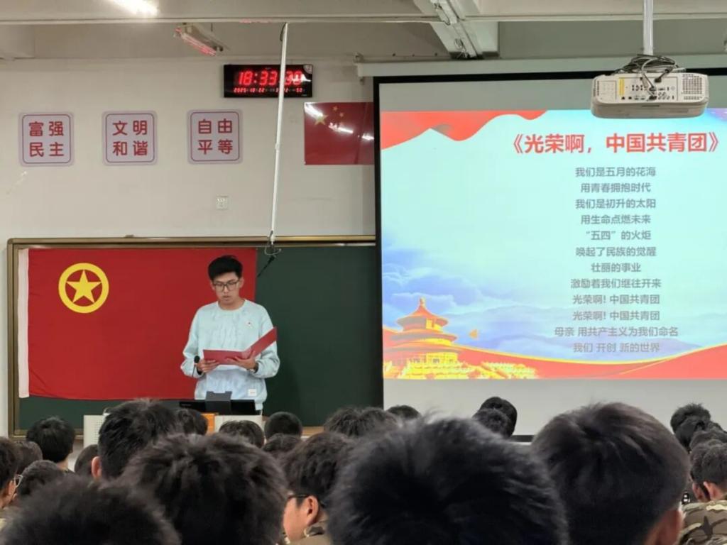 开学典礼由电力学院梁国栋同学主持。随着激昂有力的《中国共产主义青年团团歌》旋律在教室中响起,全体参加人员迅速起身肃立,神情庄重地高声齐唱。熟悉的旋律搭配振奋人心的歌词,为整场开学典礼拉开了庄重且富有感染力的序幕。