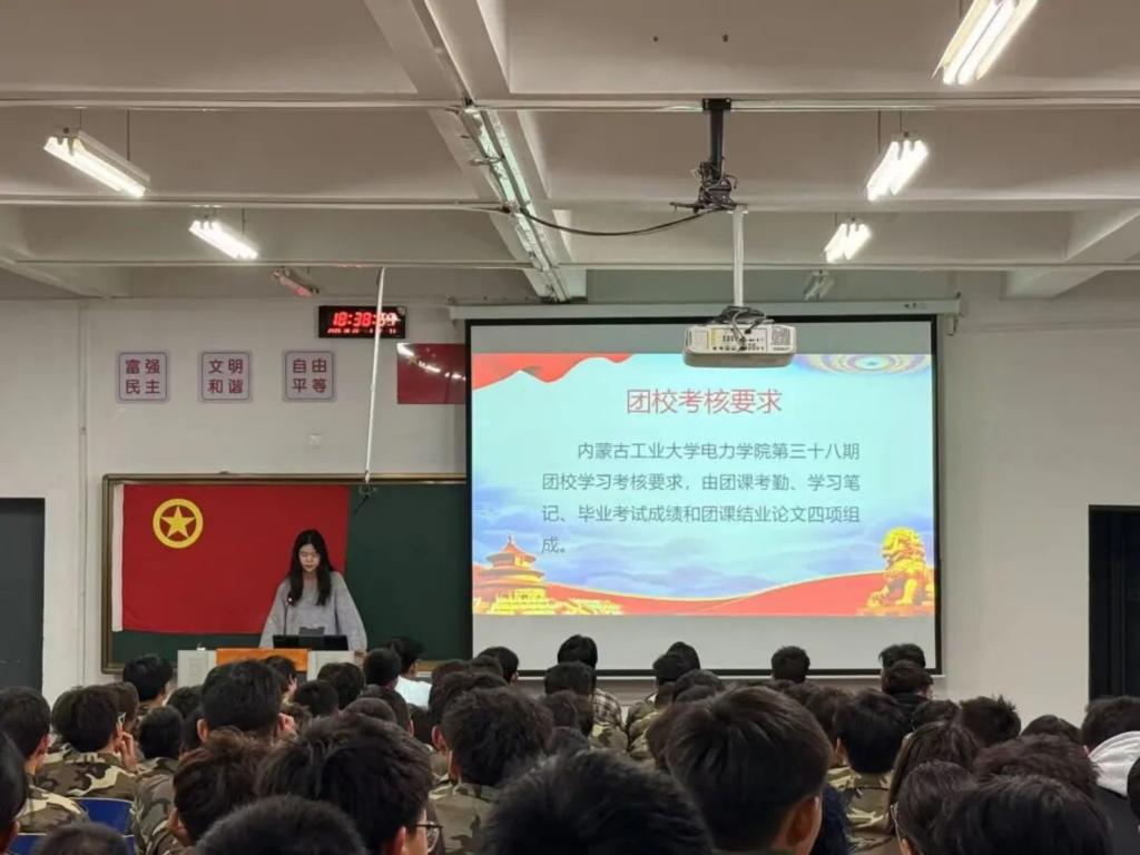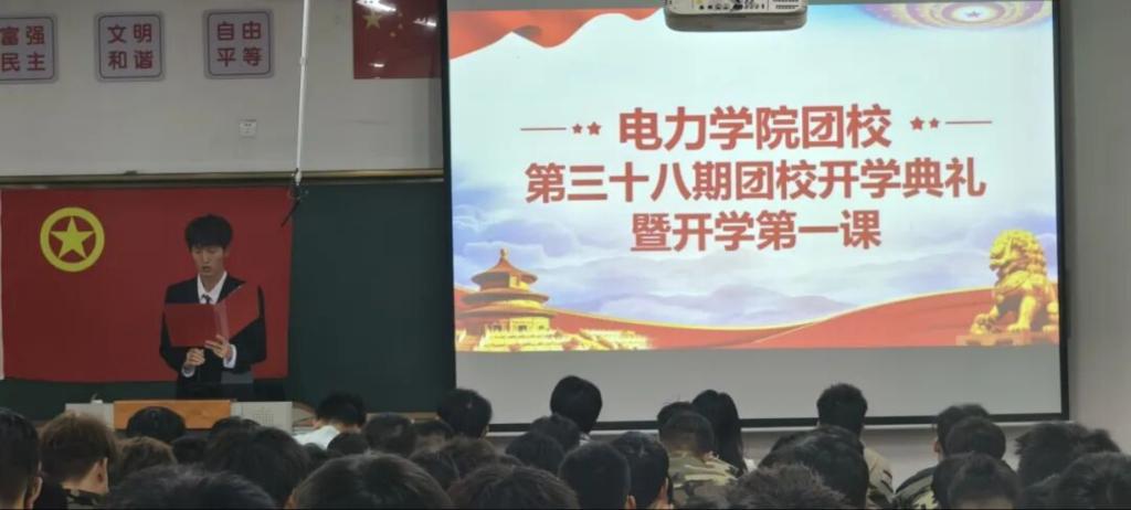 近日,电力学院第三十八期团校培训班开学典礼在教学楼 A 辅 101 准时启动。现场座无虚席,来自学院各年级的全体新学员身着整洁服装,精神饱满地齐聚一堂,带着对团校学习的期待,共同正式开启了为期一段时期的团校学习新征程,为校园团务工作注入新鲜活力。