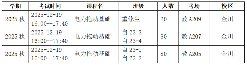《电力拖动基础》考试安排一览表