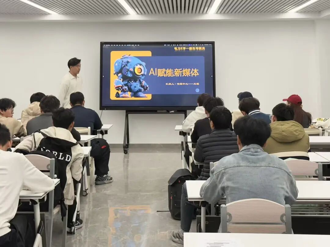 近日,为进一步拓展学院学生的学术视野、汇聚前沿科技发展的最新动态,电力学院学生会在电力大楼B209举办了"电力E享"活动。本期主题《AI赋能新媒体》由王曦同学主讲,53 位同学到场学习,一同解锁智能技术与创意创作的融合方向。