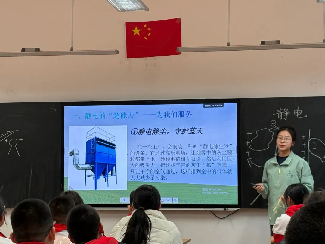 在总结环节,志愿者讲解了防静电注意事项。铜芯圆志愿服务队发挥电力专业优势,将电学知识生活化,既让学生理解了静电的应用与风险、同时也履行了科普育人的责任。