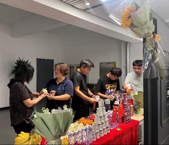 本次活动面向电力学院全体教师开展,控制研究生党支部在电子信息大楼北楼三楼处设立了茶歇摊位,准备了别具心意的饮品、水果与点心,以表达对广大教师的敬意。饮品以党建精神和育人情怀命名,寓意师道传承、润物无声。教师们在茶歇区驻足交流,品尝饮品的同时互送教师节祝福,现场气氛温馨融洽。支部党员主动为教师递上点心与饮品,送上对老师们最真诚的节日祝福。与此同时,支部党员还将承载祝福的饮品与贺卡送至正在授课的一线教师手中,让教师们在节日中感受到一份特别的温暖与尊重。