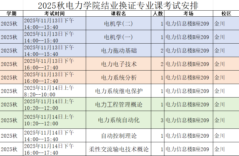2025秋电力学院结业换证专业课考试安排