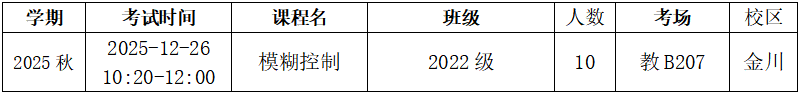 《模糊控制》考试安排一览表