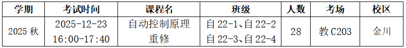 《自动控制原理》重修考试安排一览表